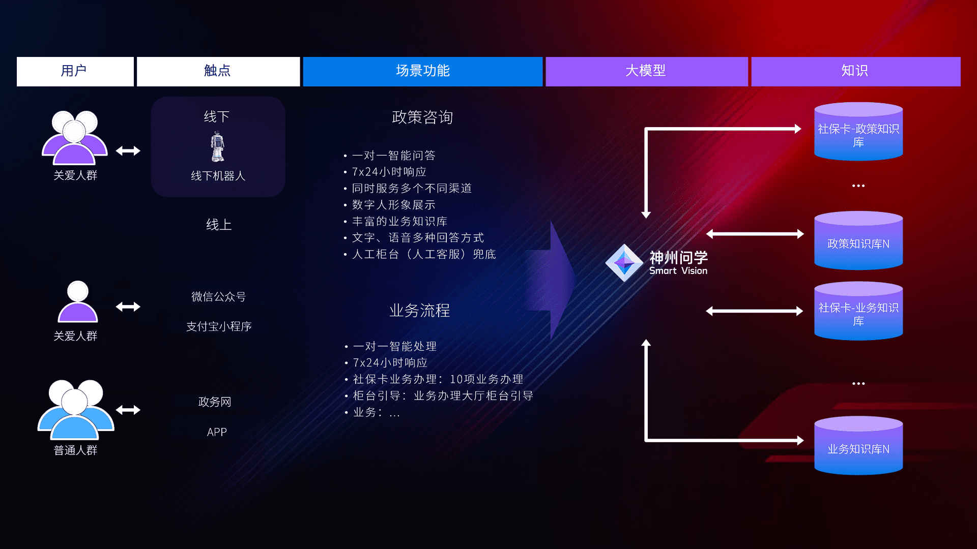 • 线上线下全覆盖:线上提供微信公众号、、、、支付宝小程序、、、政务网、、、、app多种渠道,,与线下机器人形成完整服务体系。。。。