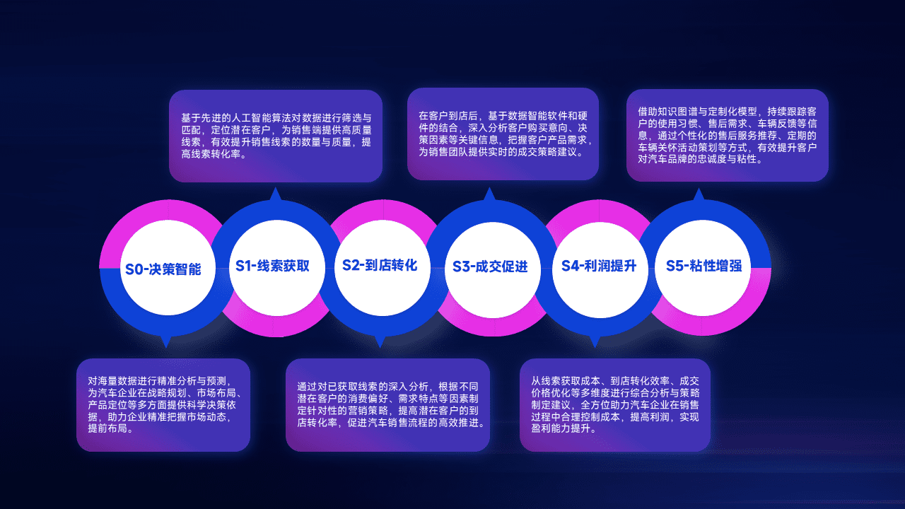 通过拓宽潜在客户来源、、、、优化线索分配并提高到店转化率,,,,以增强销售效率。。。。同时,,,利用线索数据不断优化分析模型,,,,有效提升转化率,,扩大营销影响力。。